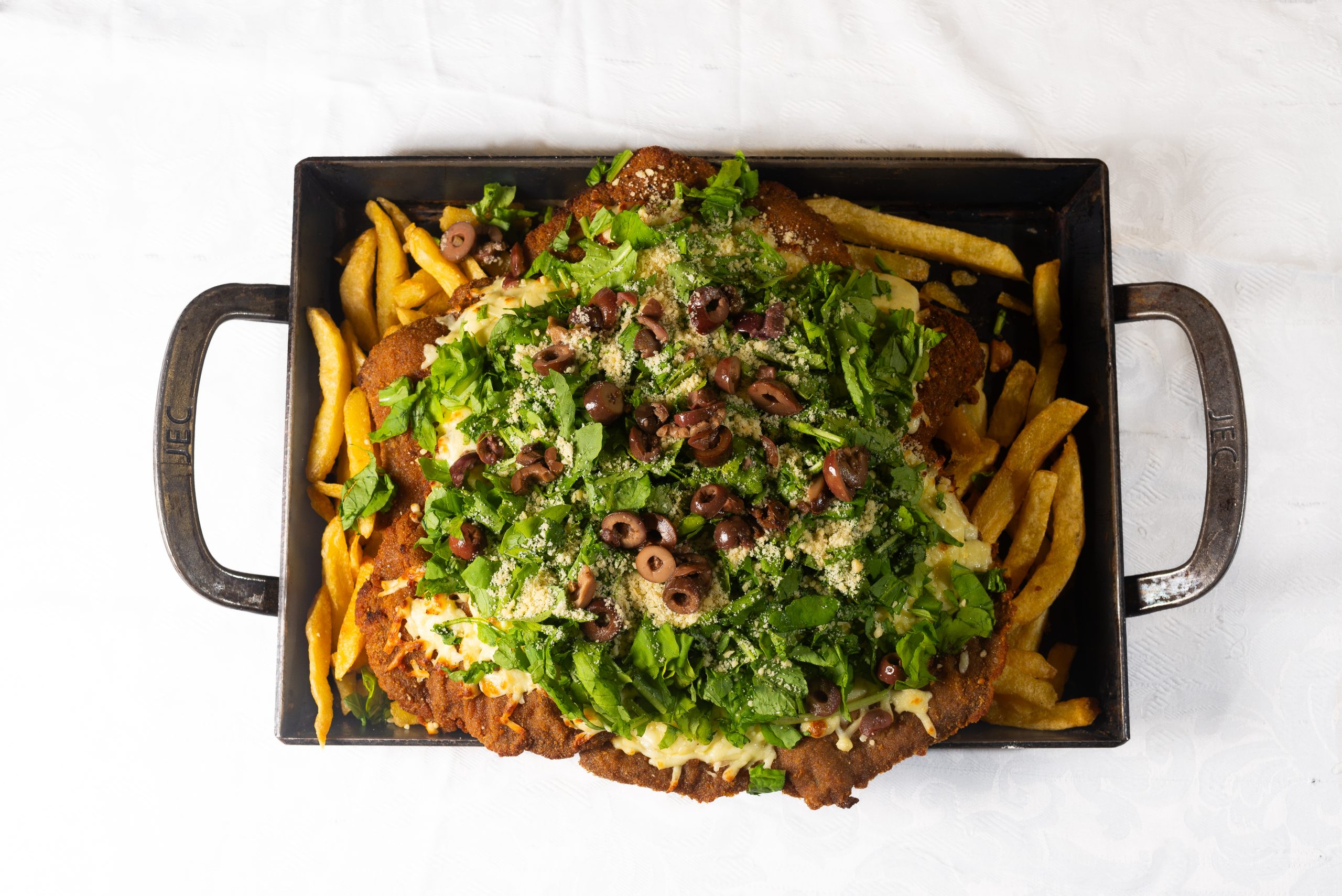 Salsa de tomate, muzzarella, rúcala fresca, parmesano y olivas negras.